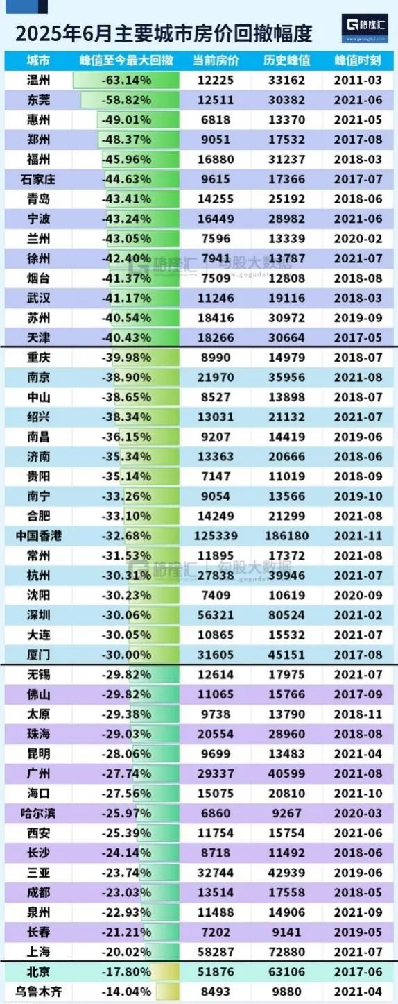 国内主要城市中,目前跌幅最大的是温州,相比于高点跌超了60%。