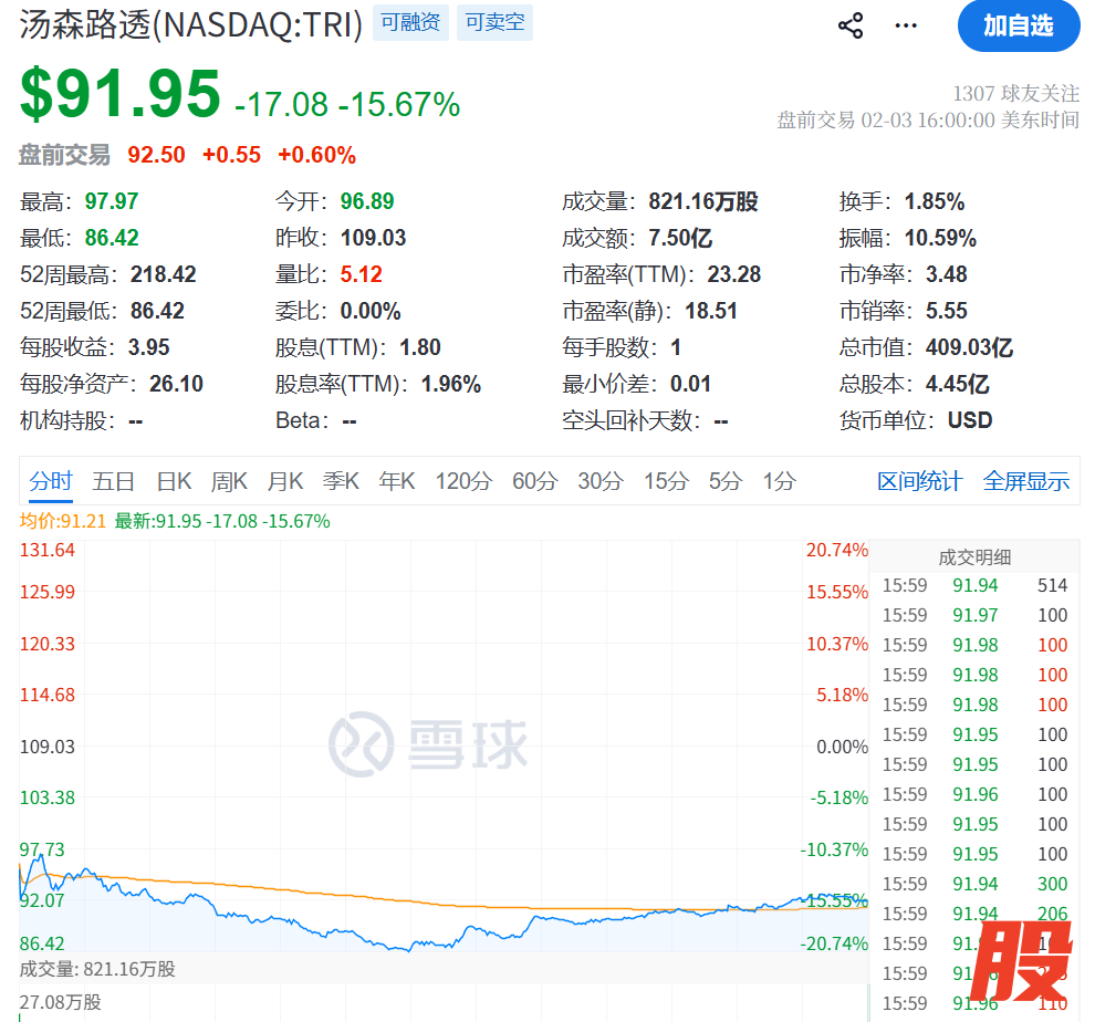 汤森路透、Legalzoom和伦敦证券交易所的股价均下跌超过12%,这些公司都提供某种形式的法律工具或研究数据库。