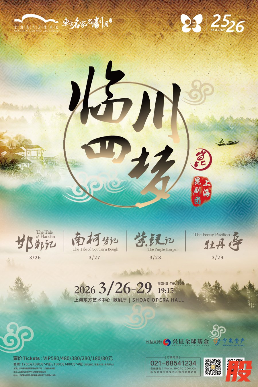 3月27日至29日,上海昆剧团还将接力献演《南柯梦记》《紫钗记》《牡丹亭》三部巨作,连续四晚带领申城观众穿越情爱、人世与哲思交织的戏曲之梦,重访汤显祖笔下的旷世风华。